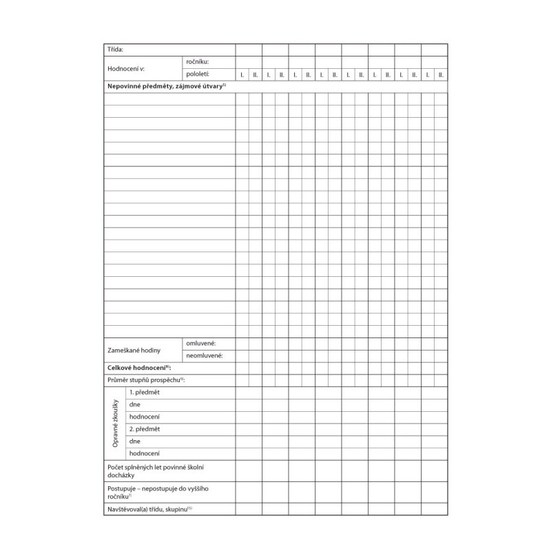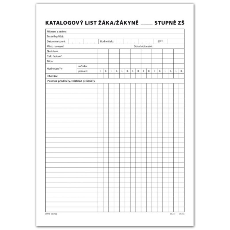 Katalogový list žáka univerzální pro 1. nebo 2. stupeň A4