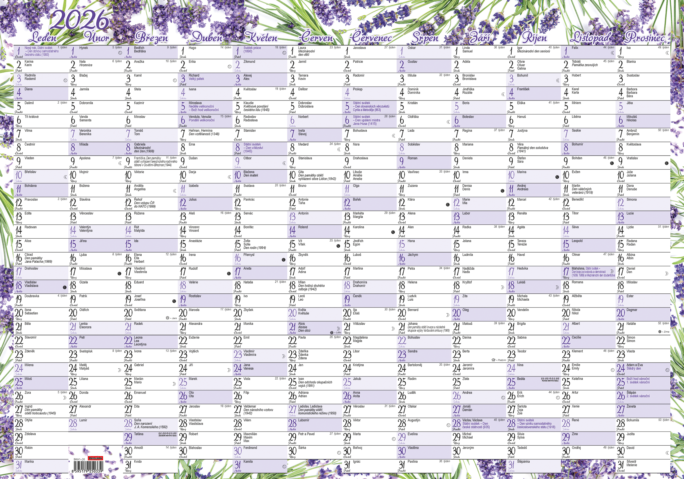 Plánovací roční nástěnná mapa - Levandule / BKA1