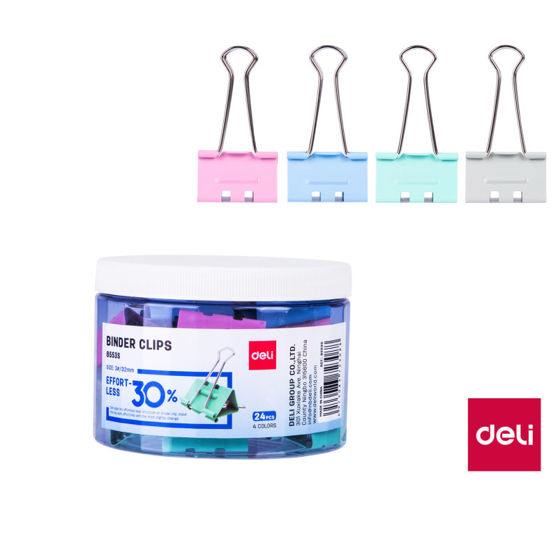 Klipy kovové pastelové DELI - 32 mm / 24 ks