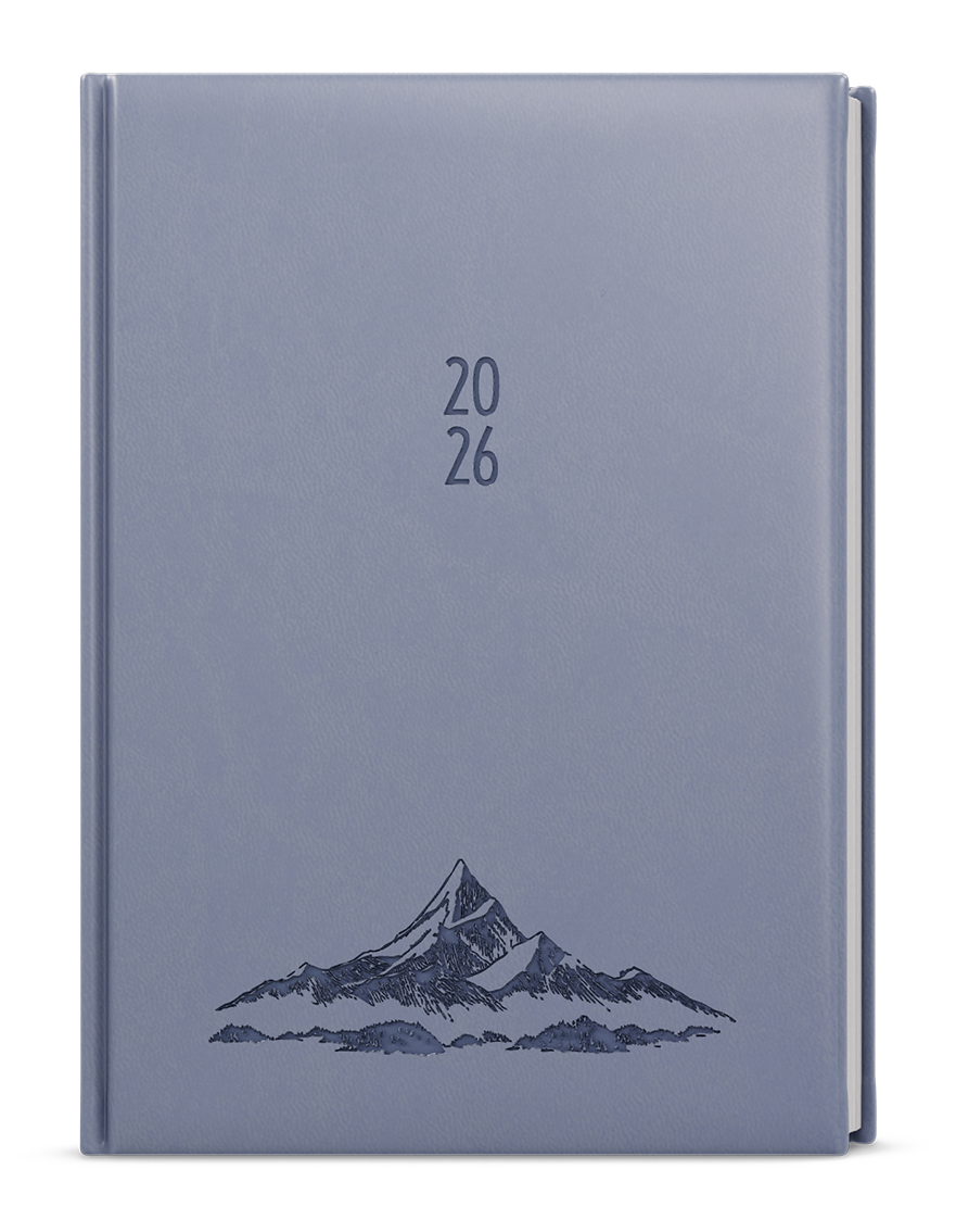 Popis k výrobku: Diář VIVELLA s ražbou - B6 / denní / holubí šeď / hory