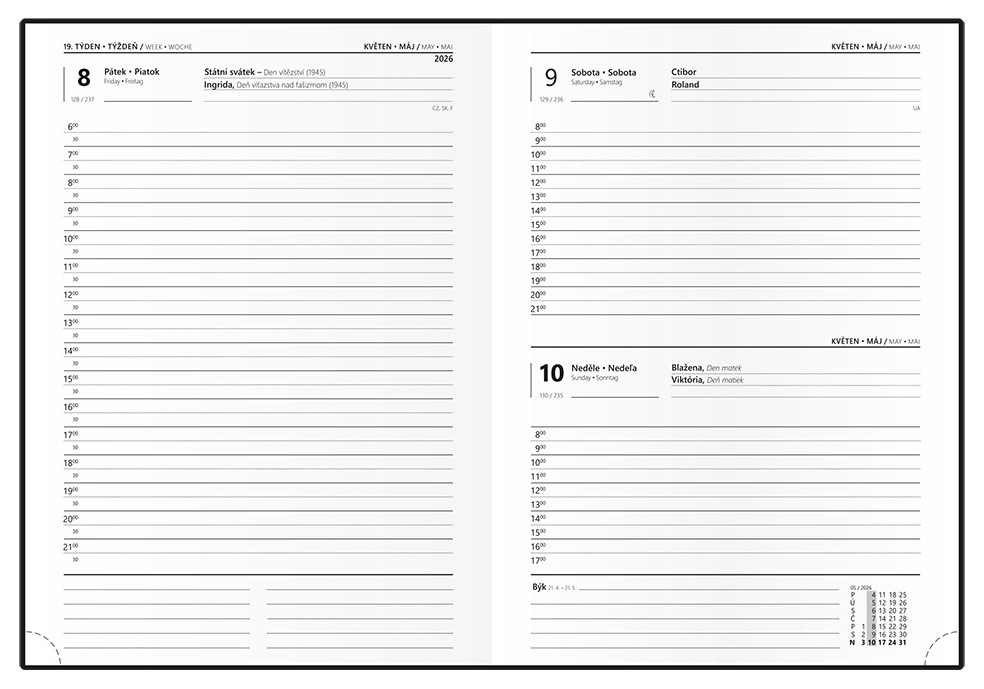 Diář VIVELLA s ražbou - B6 / denní / červená / srdce
