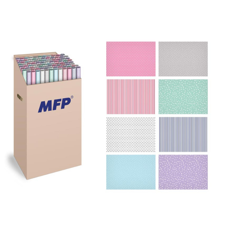 Balicí papír LUX v roli v mixu elegantních vzorů, které zahrnují jemné puntíky, proužky a moderní pastelové barvy. Díky kvalitnímu a pevnějšímu materiálu zajistí snadné balení a perfektní vzhled vašeho dárku. Jeho stylové designy jsou všestranné a hodí se pro jakoukoli příležitost, od narozenin, přes svatby, až po slavnostní události. Tento balicí papír je ideální volbou pro ty, kteří chtějí dát svým dárkům sofistikovaný a osobitý nádech.