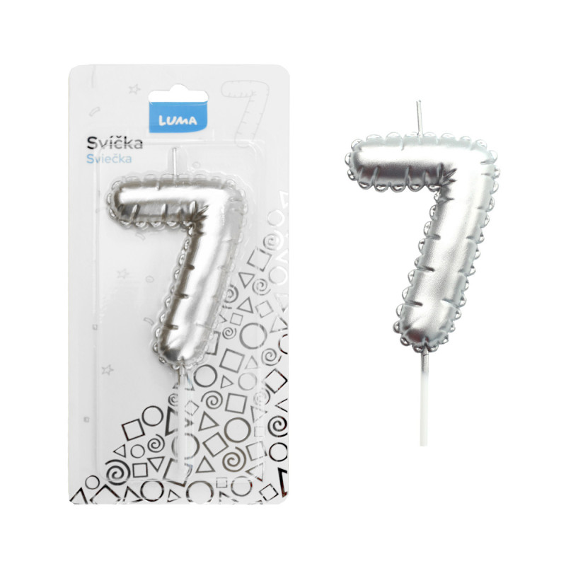 Svíčka dortová č. 7 - stříbrná