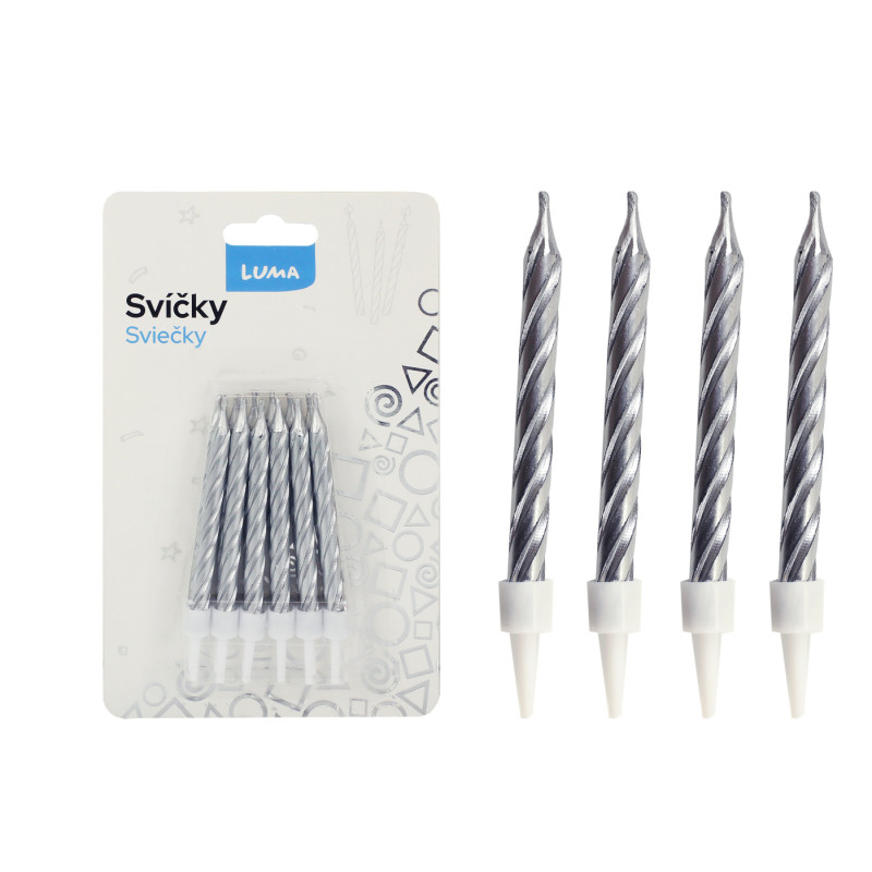 Svíčka dortová - stříbrná / 12 ks + stojánky