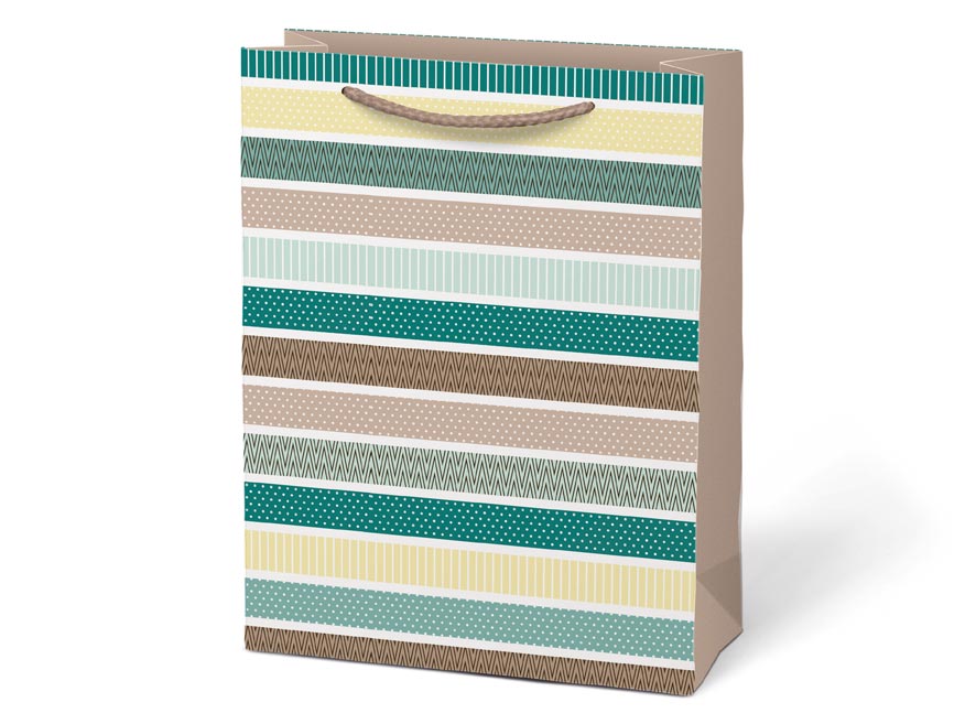 Zaujměte už balením! Elegantní dárková taška, která dodá vašemu překvapení moderní styl. Taš T4 v praktickém formátu je ideální pro středně velké dárky – knihy, kosmetické sady, drobnou elektroniku nebo sladkosti. Tento mix nabízí čtyři stylové geometrické vzory v neutrálních tónech, které ocení nejen muži, ale i milovníci minimalistického designu. Vyrobena je z kvalitního papíru a doplněna pevnými textilními uchy pro snadné a pohodlné přenášení. Skvěle se hodí pro každou příležitost, kde chcete darovat s vkusem. Rozměr: 190 x 250 x 90 mm Motiv: geometrické a abstraktní vzory Dodáváme v mixu 4 motivů dle aktuální skladové zásoby. Uvedená cena je za 1 ks.