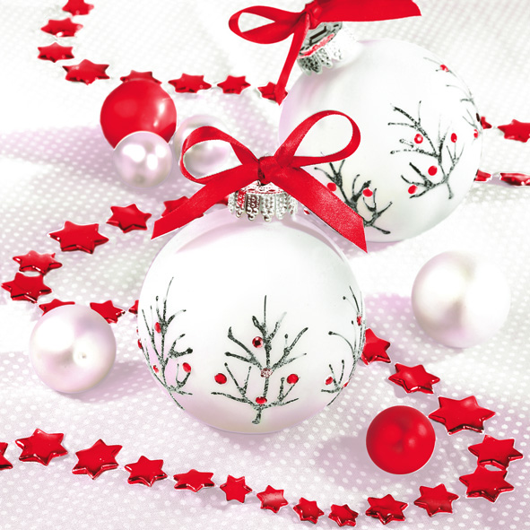 Ubrousky DAISY L (20ks) White and Red Baubles
