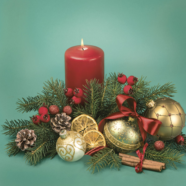 Ubrousky DAISY L (20ks) Red Candle Composition on Green