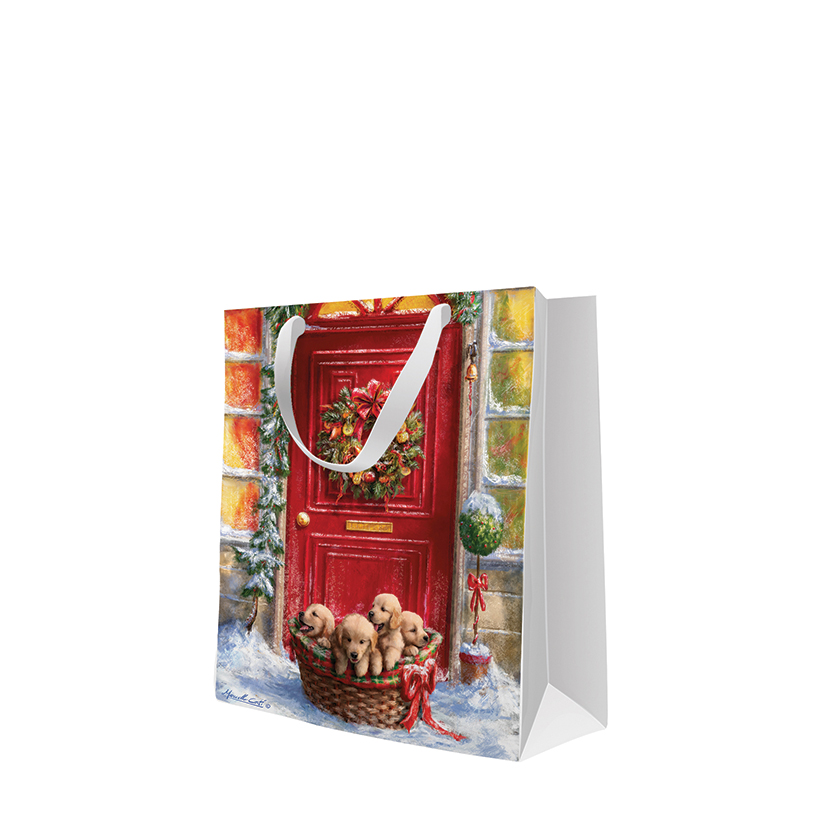 Vánoční papírová taška PAW Basket with Puppies střední ,balení 10 ks