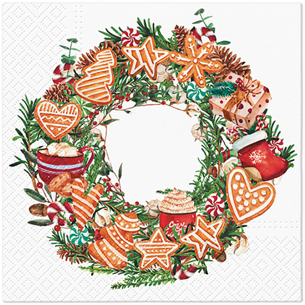 Ubrousky PAW Dekor L (20ks) Gingerbread Wreath