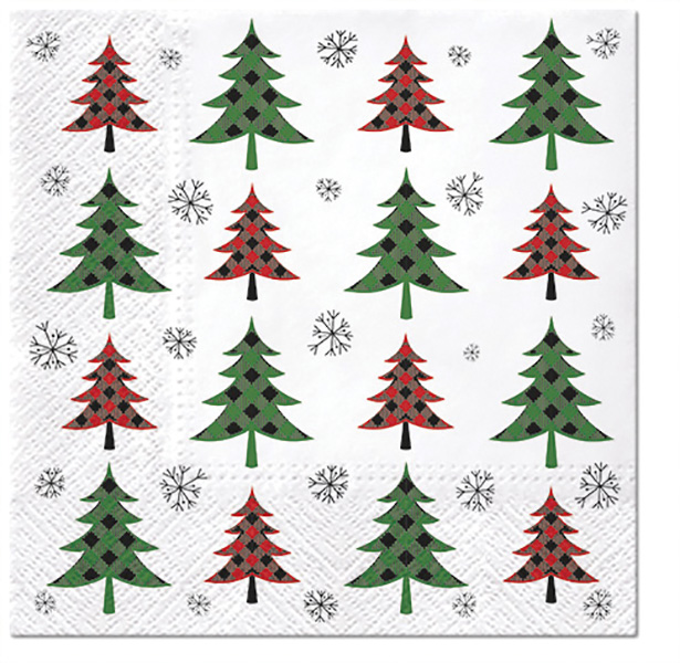 Ubrousky PAW Dekor L (20ks) Christmas Tree Check (red and green)
