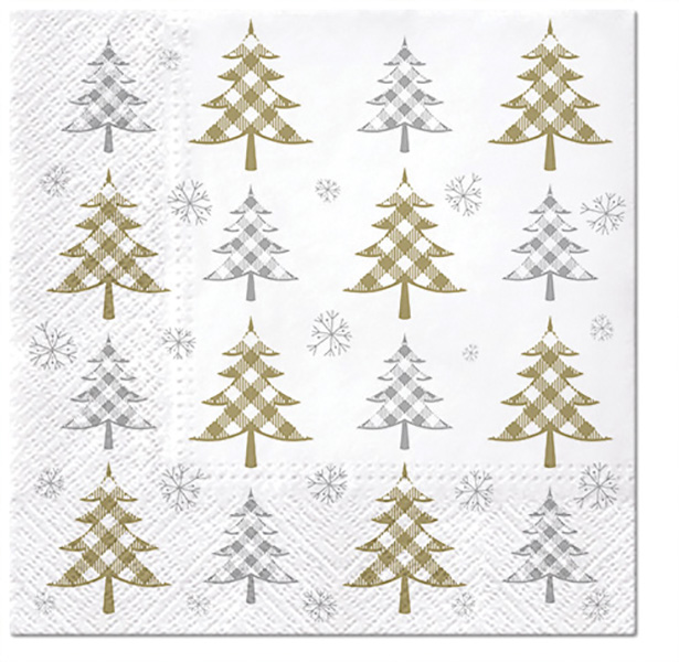 Ubrousky PAW Dekor L (20ks) Christmas Tree Check (gold and silver)