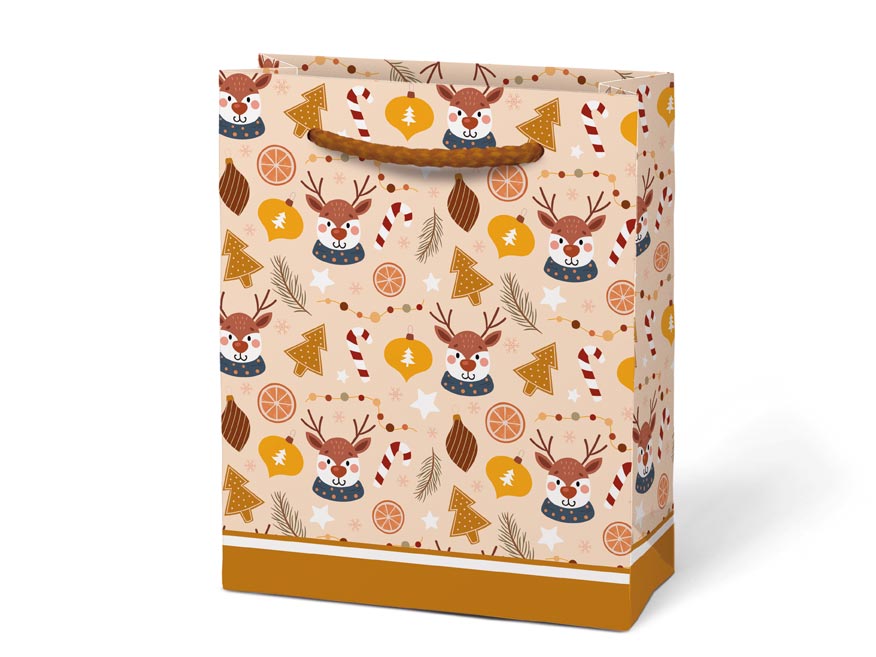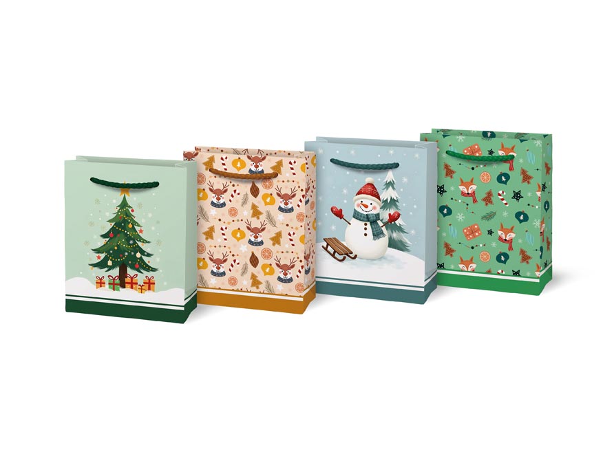 Hravé balení dárků bez nůžek a lepicí pásky? Přesně tak. Vánoční dárková taška velikosti T1 je jako stvořená pro všechny, kteří chtějí malý dárek zabalit rychle, stylově a s vánočním kouzlem. Ať už plánujete darovat šperk, kosmetiku, sladkost nebo jinou drobnou radost – tato taška to zvládne s přehledem. Na výběr máte několik veselých vánočních motivů – sněhulák, sobi, stromeček nebo lišky v zasněžené krajině. Kvalitní papír a pevná textilní ucha zajistí, že taška nejen dobře vypadá, ale také něco unese. Rozměry: 111 × 137 × 62 mm Motiv: stromeček, sobi, sněhulák, lišky Dodáváme v mixu 4 motivů dle aktuální skladové dostupnosti. Uvedená cena je za 1 ks.