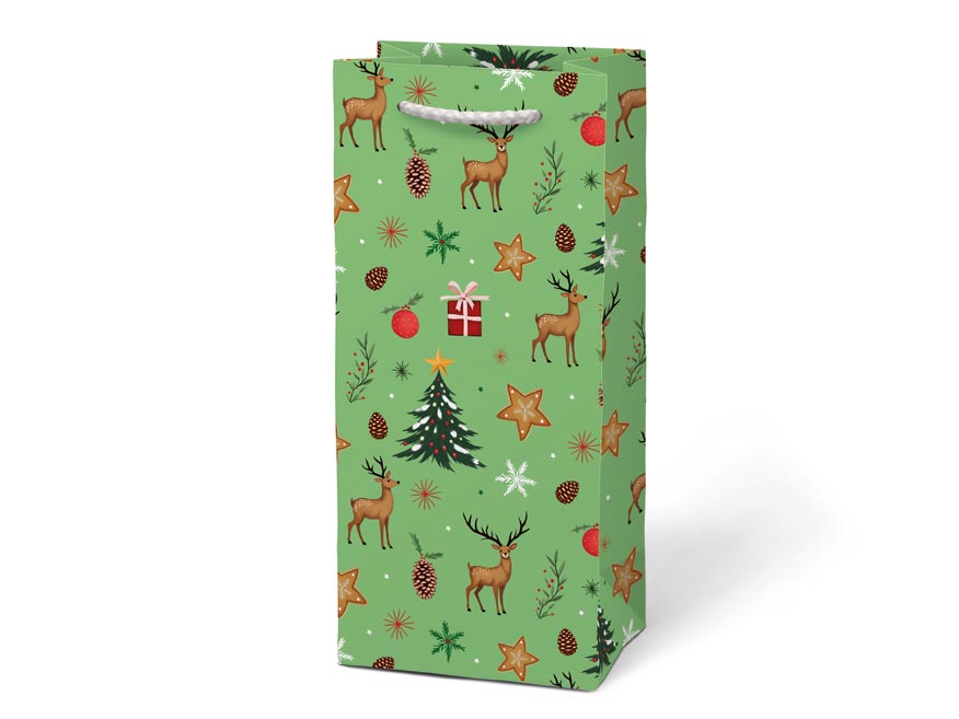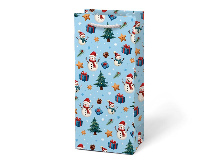 Vánoční dárková taška MFP T3 - stylové balení dárků bez stresu Elegantní a praktická vánoční papírová dárková taška T3 od značky MFP je perfektním řešením pro každého, kdo chce darovat dárek originálně a bez zdlouhavého balení. Barevné motivy se soby, sněhuláky, stromečky a ozdobami vytvářejí kouzelnou vánoční atmosféru a dodají vašemu překvapení tu pravou sváteční jiskru. Motiv: vánoční Rozměry: 100 × 220 × 55 mm Barva: tmavě zelená, světle zelená, světle modrá, červená Dodáváme v mixu 4 motivů a barev dle aktuální skladové dostupnosti. Uvedená cena je za 1 ks.
