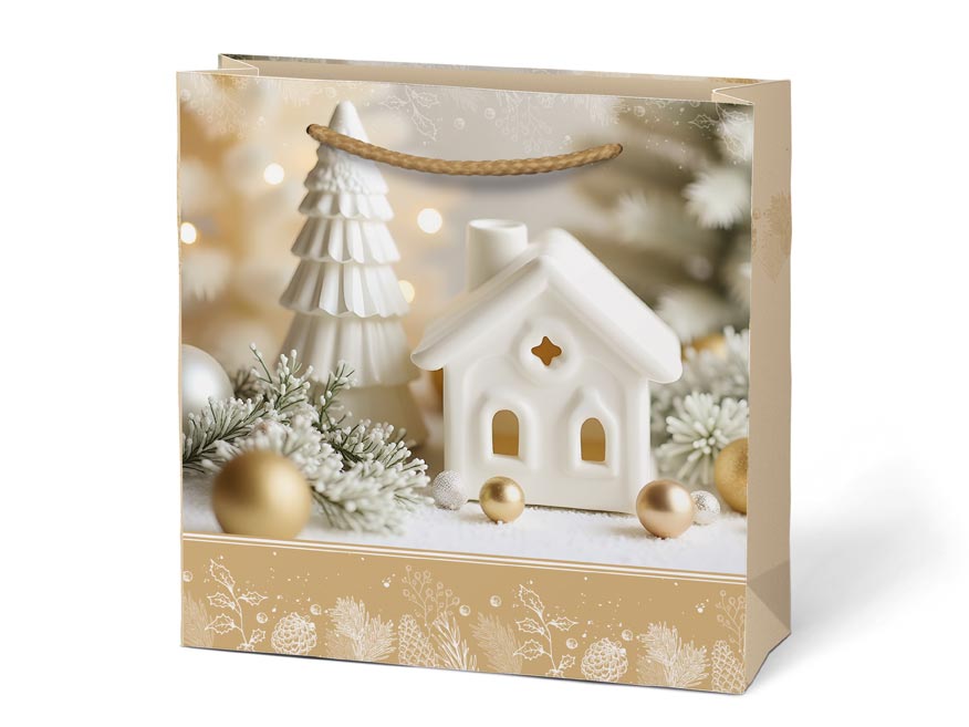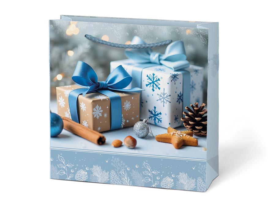 Vánoční dárková taška MFP T2 – mix designů pro vaše dárky Chcete, aby váš dárek zaujal už na první pohled? Vánočpapírová dárková taška MFP T2 je elegantním a praktickým řešením, které ušetří čas při balení a přitom dodá vašemu dárku slavnostní vzhled. Je ideální pro menší krabičky, kosmetiku, svíčky, sladkosti nebo jiné drobnosti, které chcete věnovat stylově. Taška je vyrobena z kvalitního pevného papíru a doplněna odolným provázkovým uchem pro pohodlné přenášení. Nabízíme ji v mixu vánočních designů – od svíček, dárků a ozdob až po zimní chaloupky a moderní sváteční dekorace. Motiv: vánoční Rozměry: 170 × 170 × 60 mm Barva: béžová/hnědá, světle modrá, červená, zelená Dodáváme v mixu 4 motivů a barev dle aktuální skladové dostupnosti. Uvedená cena je za 1 ks.