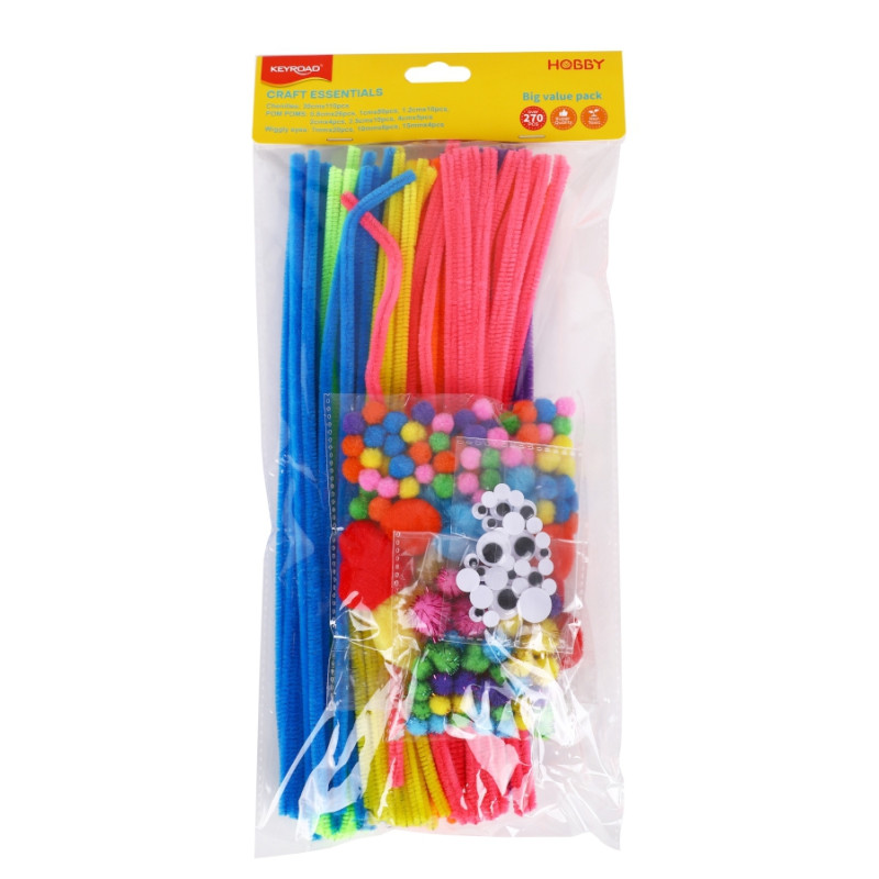 Velká kreativní sada bambulek, drátků a očiček. Tato bohatá tvořivá sada obsahuje více než 270 ks barevných bambulek, chlupatých drátků a dekoračních očiček (drátky 30 cm × 110 ks, bambulky 0,8 cm × 26 ks, 1 cm × 80 ks, 1,2 cm × 10 ks, 2 cm × 4 ks, 2,5 cm × 10 ks, 4 cm × 5 ks, očička 7 mm × 20 ks, 10 mm × 6 ks, 15 mm × 4 ks). Všechny komponenty jsou netoxické a vyrobené ve vysoké kvalitě. Materiál lze lepit, stříhat i tvarovat, takže je ideální pro výrobu různých postaviček, zvířátek, ozdob i originálních dekorací. Skvělá volba pro školní projekty, domácí tvoření i jako zábavný dárek pro malé kreativce.