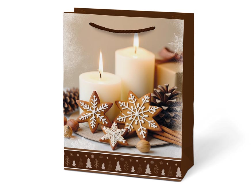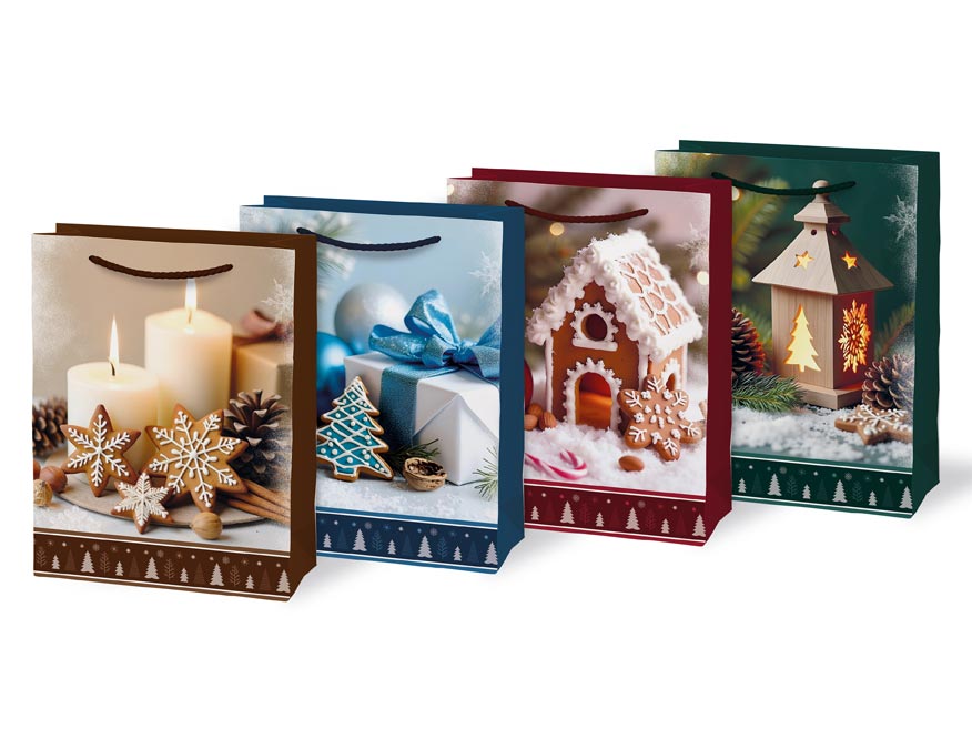 Vánoční dárková taška MFP T4 – kouzelné balení dárků Dárková papírová taška MFP T4 s vánočním motivem je ideální volbou pro každého, kdo chce zabalit vánoční překvapení rychle, elegantně a bez zbytečného stresu. Vánoční motivy se svíčkami, perníčky, dárky, zimními dekoracemi, perníkovou chaloupkou a lucernou navodí hřejivou atmosféru a podtrhnou radost z obdarování. Motiv: vánoční Rozměry: 190 × 250 × 90 mm Barva: hnědá, modrá, bordó, zmavě zelená Dodáváme v mixu 4 motivů a barev dle aktuální skladové dostupnosti. Uvedená cena je za 1 ks.