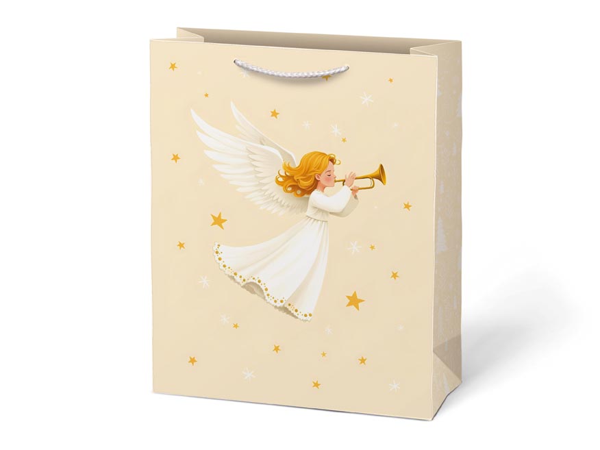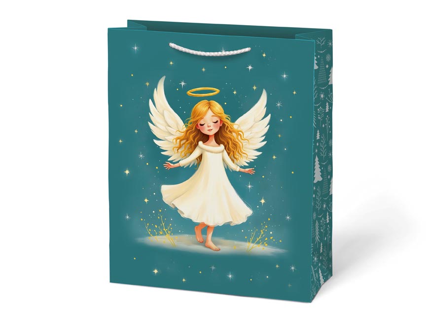 Vánoční papírová taška MFP T5 – andělská a pohádková Nechte dárky vyniknout v prostorné dárkové vánoční papírové tašce MFP T5. Pastelové motivy s anděly, perníkovou chaloupkou a vánočními ozdobami dodají balení něhu i kouzlo Vánoc. Díky většímu rozměru pohodlně pojme i větší překvapení, a přitom vypadá elegantně. Motiv: vánoční Rozměry: 190 × 250 × 90 mm Barva: petrolejová, lososová, světle zelená, béžová Dodáváme v mixu 4 motivů a barev dle aktuální skladové dostupnosti. Uvedená cena je za 1 ks.