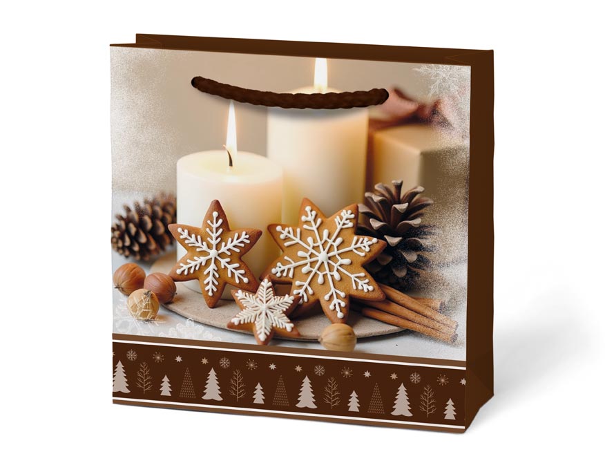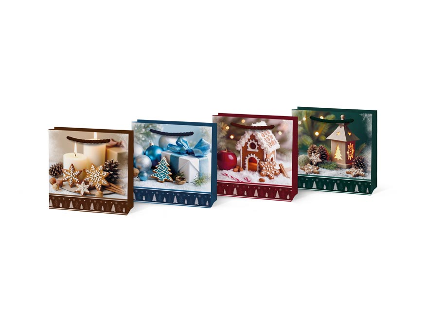 Kouzlo Vánoc v každém detailu! Dárková papírová taška T0 s bohatým vánočním motivem – ideální na drobné dárky, přání nebo malou pozornost. Realistické fotografie se svíčkami, perníčky, dárky nebo zimními dekoracemi vytvářejí teplou a slavnostní atmosféru. Malý formát tašky působí mile a osobně. Je opatřena pevnými šňůrkovými uchy a spodním dekorem s vánočním motivem, který celé balení krásně doladí. Skvělá volba pro drobnosti, které potěší nejen obsahem, ale i balením. Rozměry: 90 × 90 × 40 mm Motiv: svíčky, dárky, perníčky, dekorace Dodáváme v mixu 4 motivů dle aktuální skladové dostupnosti. Uvedená cena je za 1 ks.