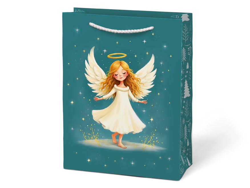 Vánoční dárková taška MFP T4 – andělská elegance Chcete svému dárku dodat kouzelný a něžný vzhled? Papírová vánoční taška MFP T4 v rozměru 190 × 250 × 90 mm zaujme svými jemnými motivy andělů, vánoční chaloupky a ozdob. Kombinace pastelových barev vytváří příjemnou sváteční atmosféru a dělá z každého daru ještě větší radost Motiv: vánoční Rozměry: 190 × 250 × 90 mm Barva: petrolejová, lososová, světle zelená, béžová Dodáváme v mixu 4 motivů a barev dle aktuální skladové dostupnosti. Uvedená cena je za 1 ks.