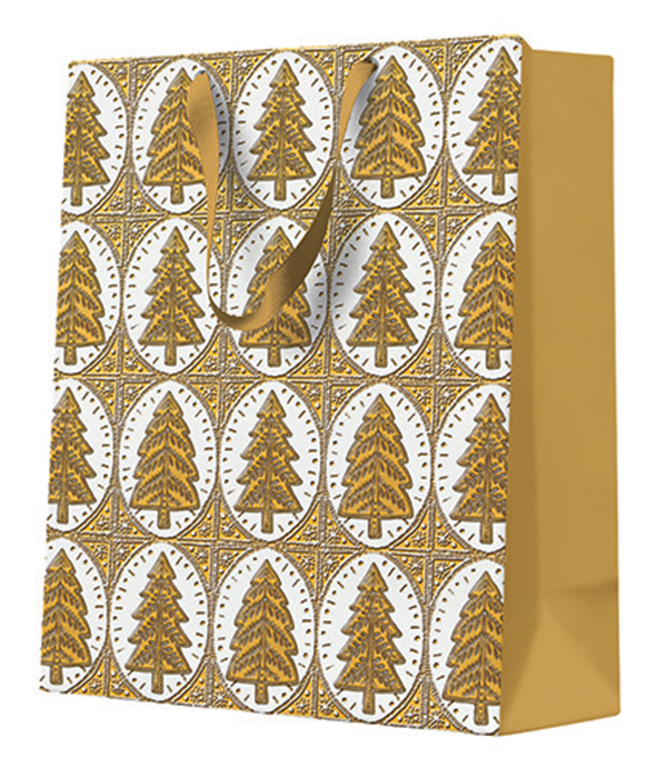 Vánoční papírová taška Paw Premium Pattern Christmas Trees střední ,balení 10 ks