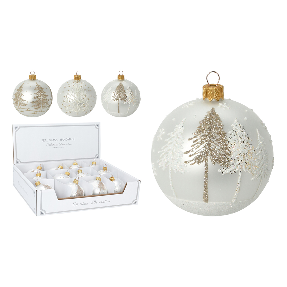 Vánoční koule 100 mm bílá zdobená třpytkami /1ks
