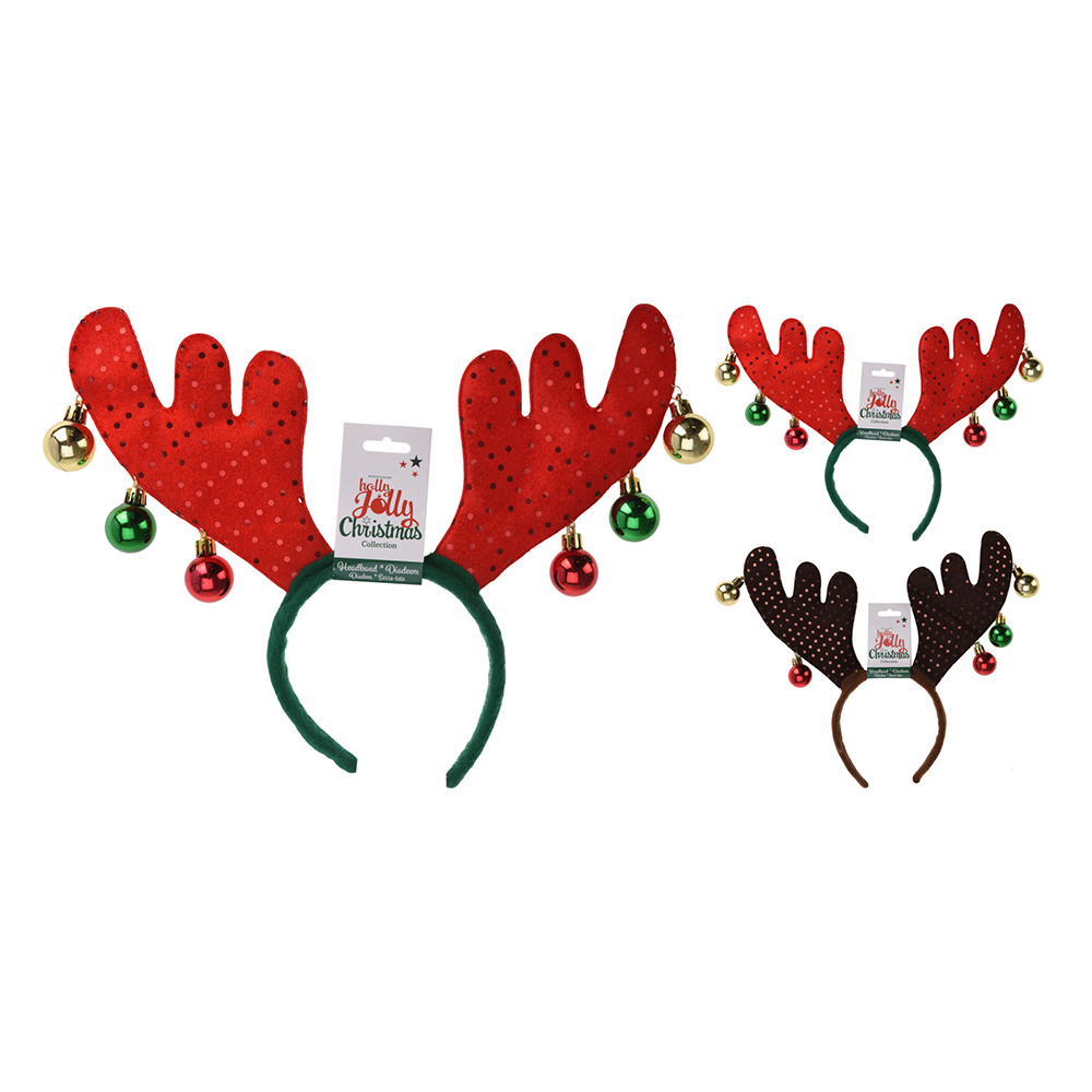 Čelenka - sobí parohy s vian. koulemi 38 cm, mix/1ks