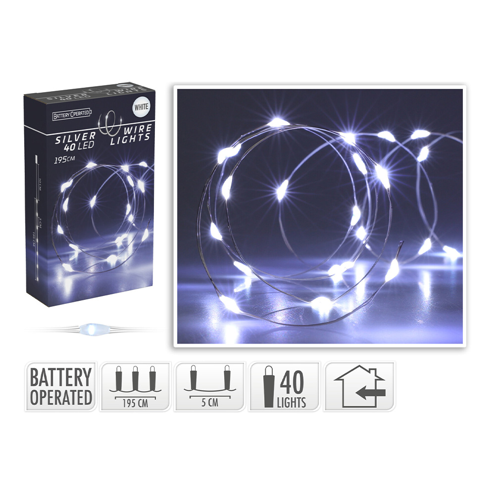 Světelný řetěz 40 LED studená bílá, délka 195 cm