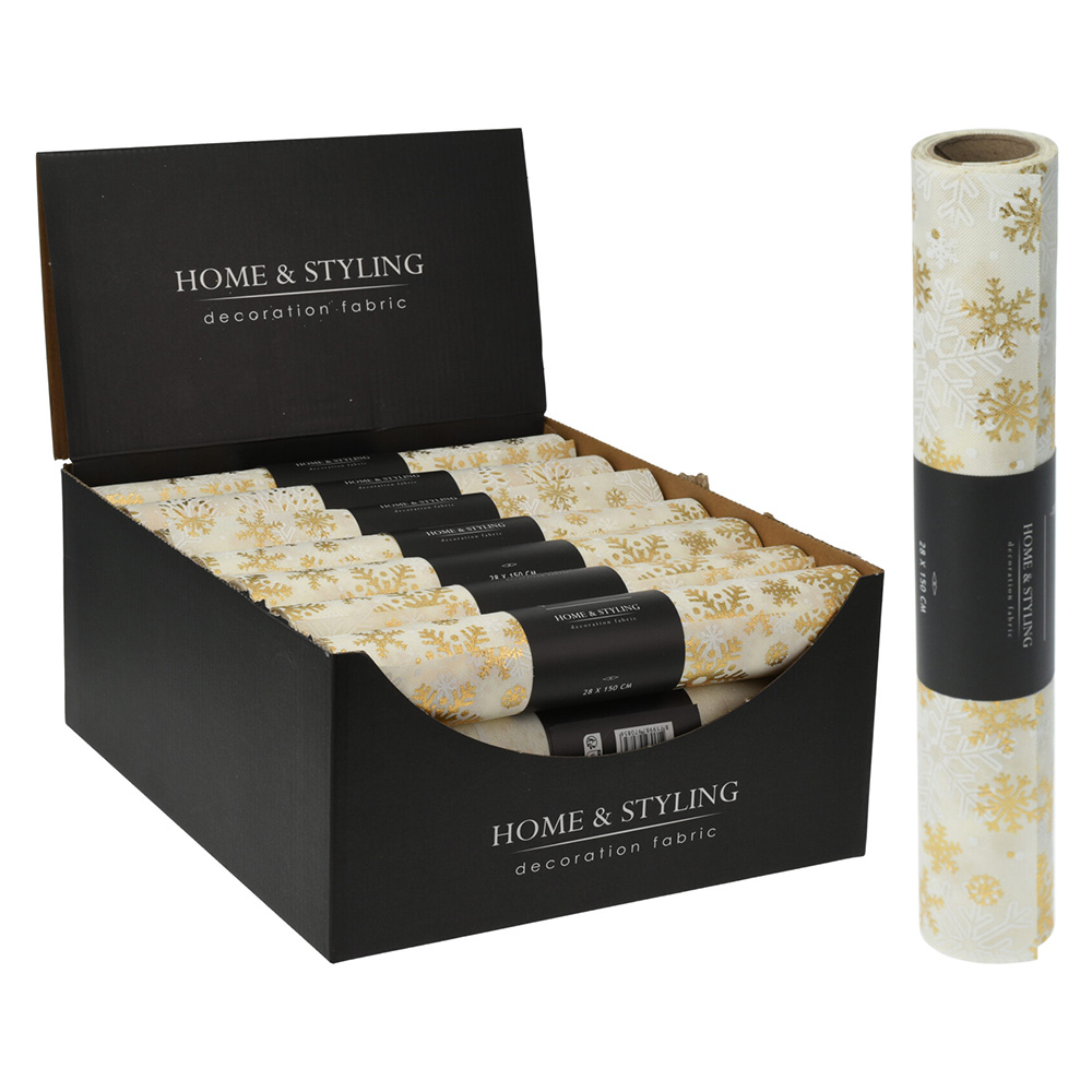 Popis k výrobku: Látka organza 28x250 cm - sněhové vločky zlaté barvy