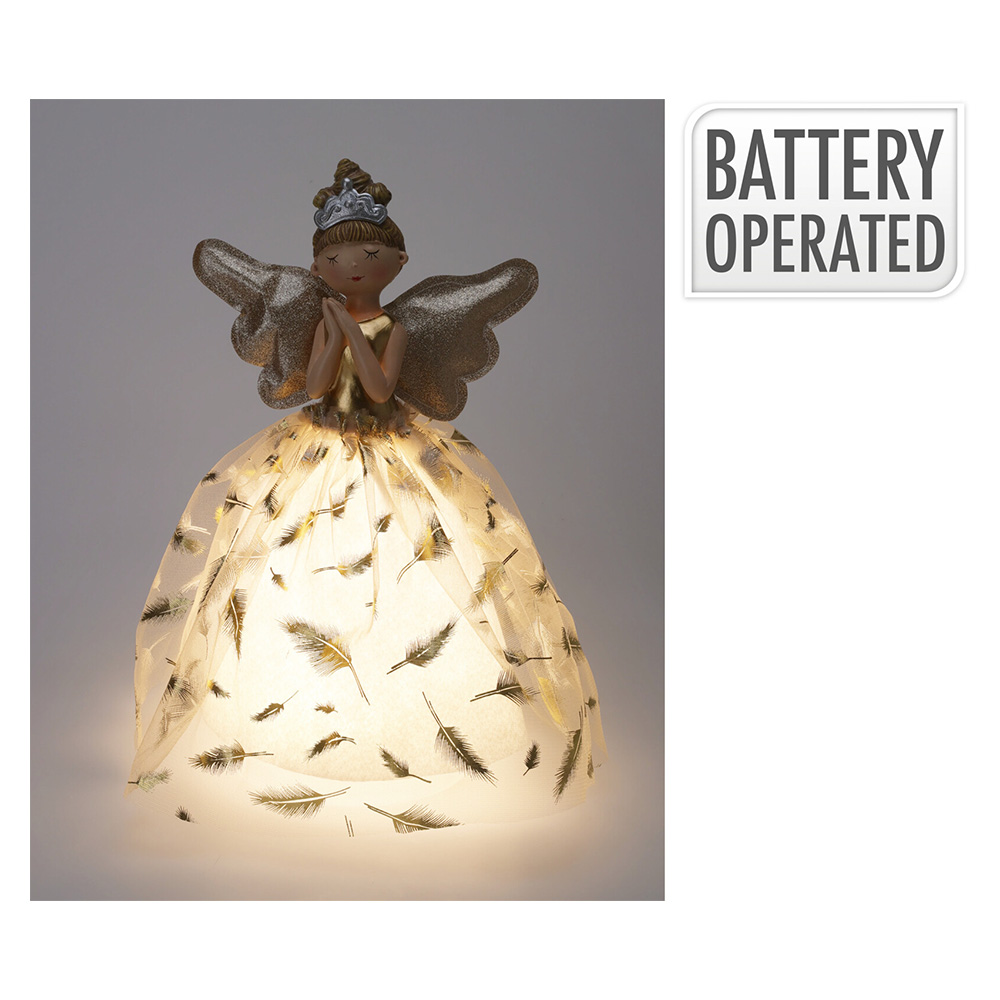 Andílek s LED světlem 22x36cm, zlatá sukýnka