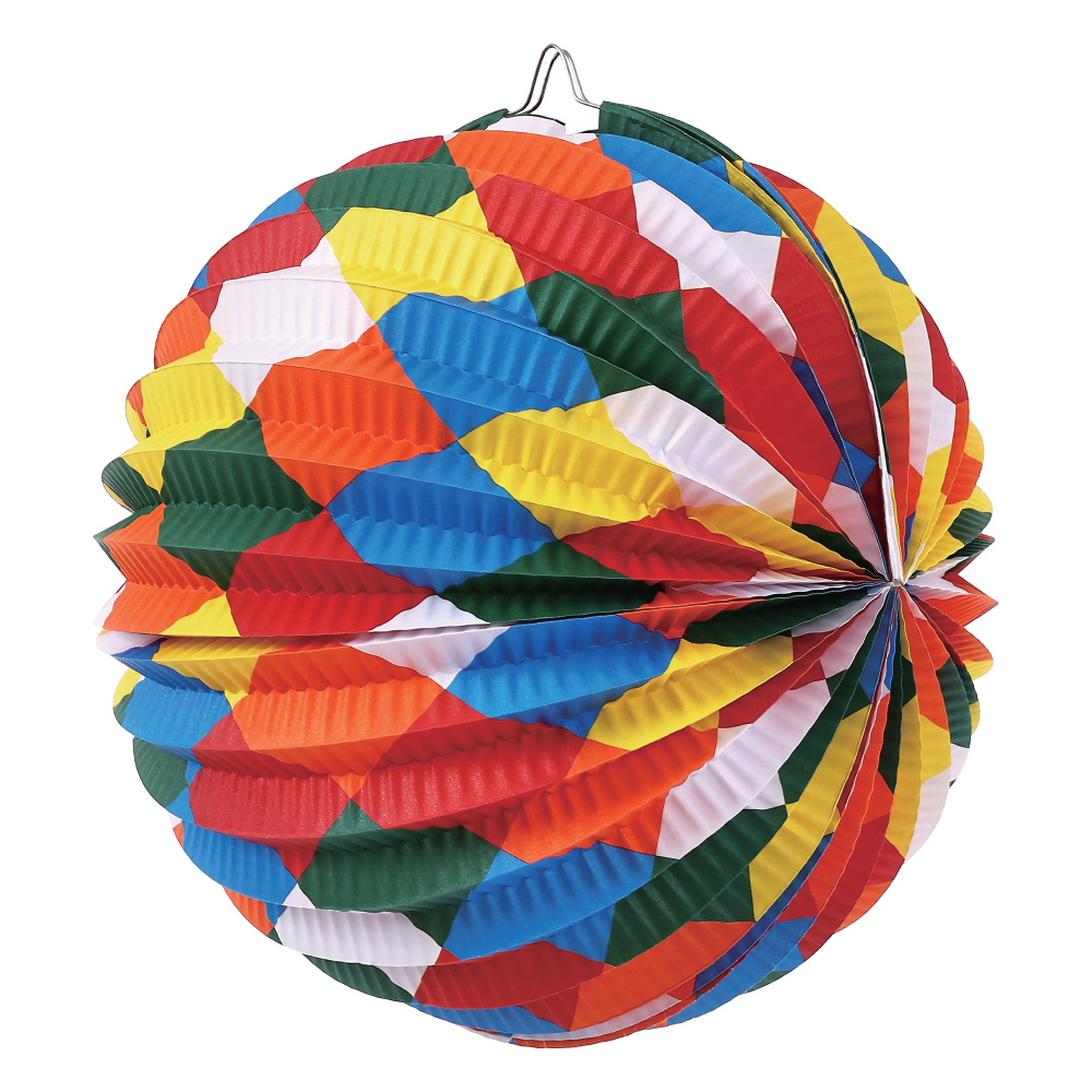 Lampion Barvy, papírový, kulatý, 26 cm, očko k zavěšení. Použití: dekorační účely, večírky a karnevaly. Upozornění: Nevhodné pro děti do 3 let. Není to hračka. Doporučuje se dohled dospělé osoby. Riziko vznícení a popálení. Držák na lampion není součástí balení.