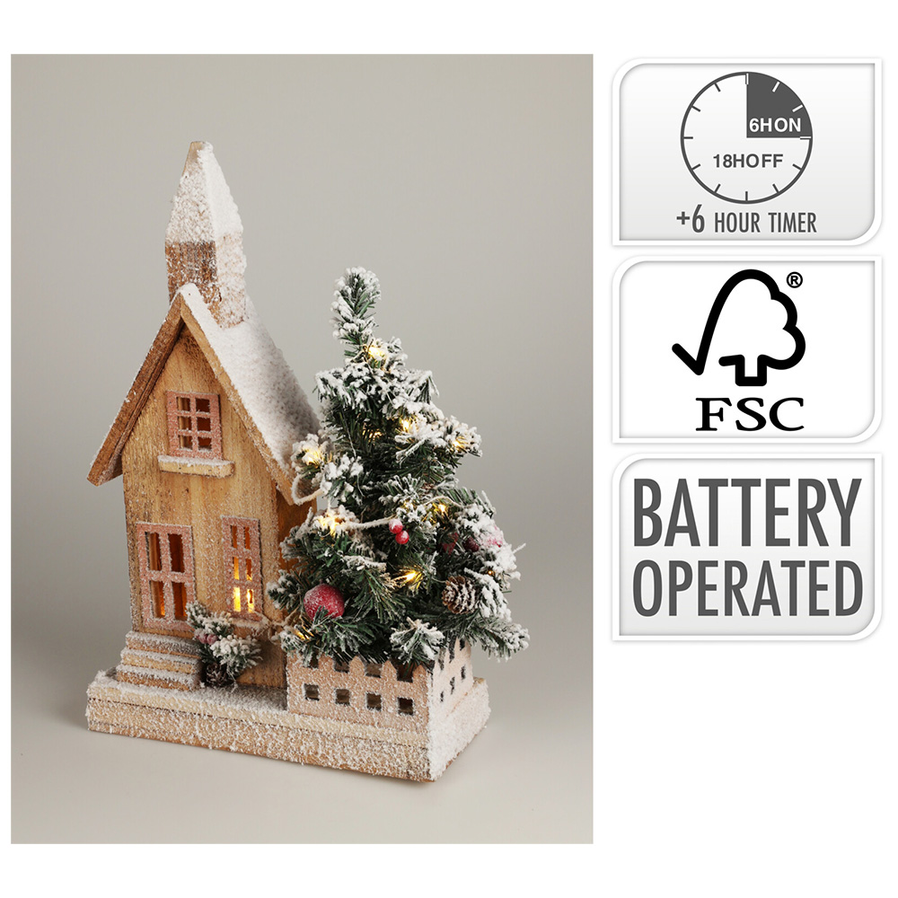 Popis k výrobku: Dřevěný domek s vánočním stromkem a LED osvětlením