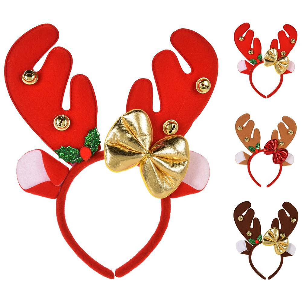 Čelenka se sobími parohy zdobenými rolničkami, lesklou mašlí a doplňky.