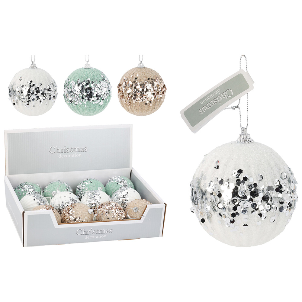 Popis k výrobku: Vánoční koule 80 mm zdobená flitry (mix 3 barev, cena /1 ks)