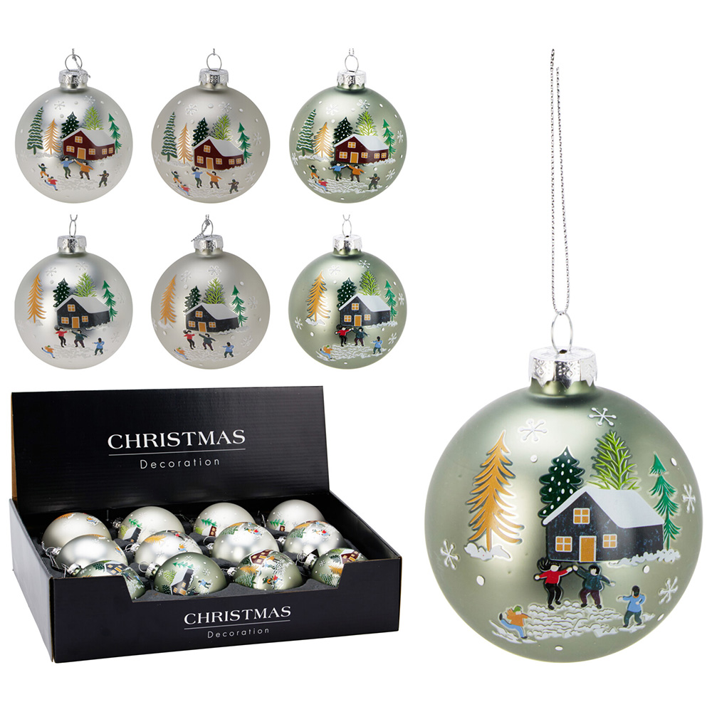 Vánoční koule 80 mm, dekorace zimní motivy (mix 6 vzorů, cena /1 ks)