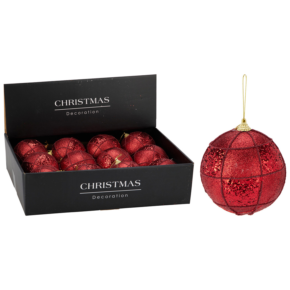 Popis k výrobku: Vánoční koule 100 mm červená, třpytivá (cena /1 ks)