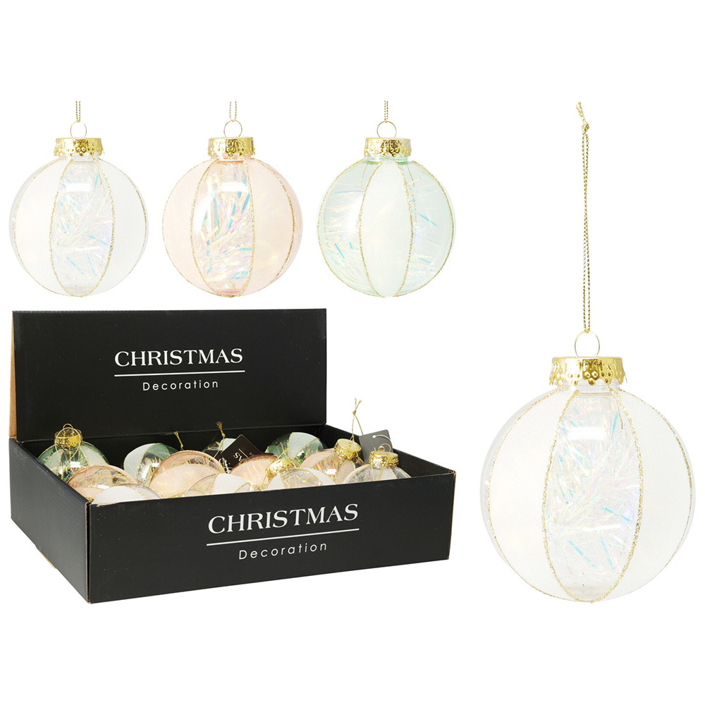 Vánoční koule pruhovaná, dekor s imitací námrazy, třpytivý zlatý pásek (mix 3 barev.