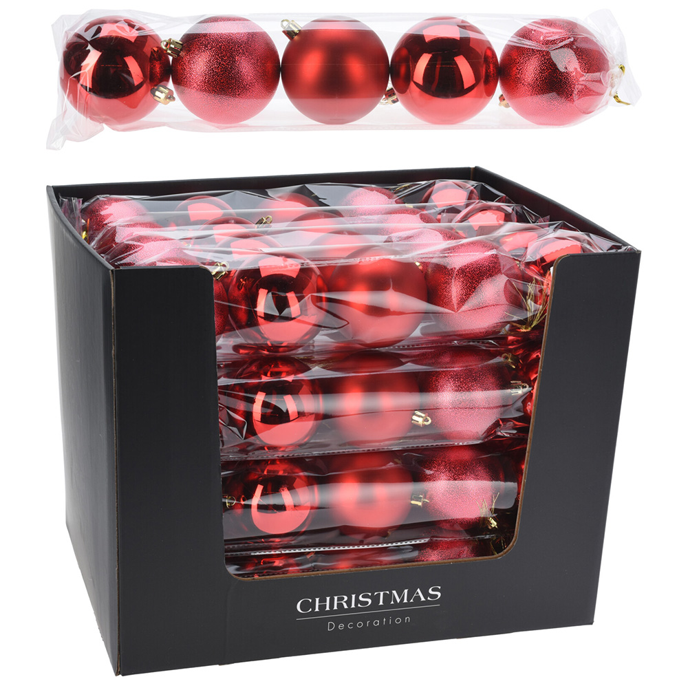 Vánoční koule 80 mm v červené barvě (mix) - sada 5 kusů