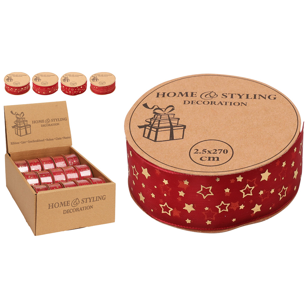 Popis k výrobku: Dekorační stuha 25x2700 mm tkaná, vínová (mix 4 vzorů, cena /1 ks)