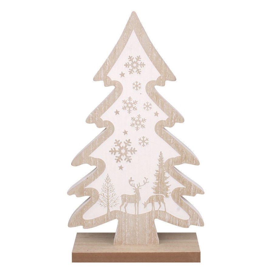 Vánoční strom s bílým potiskem dřevěný k postavení 17 x 30 x 5 cm
