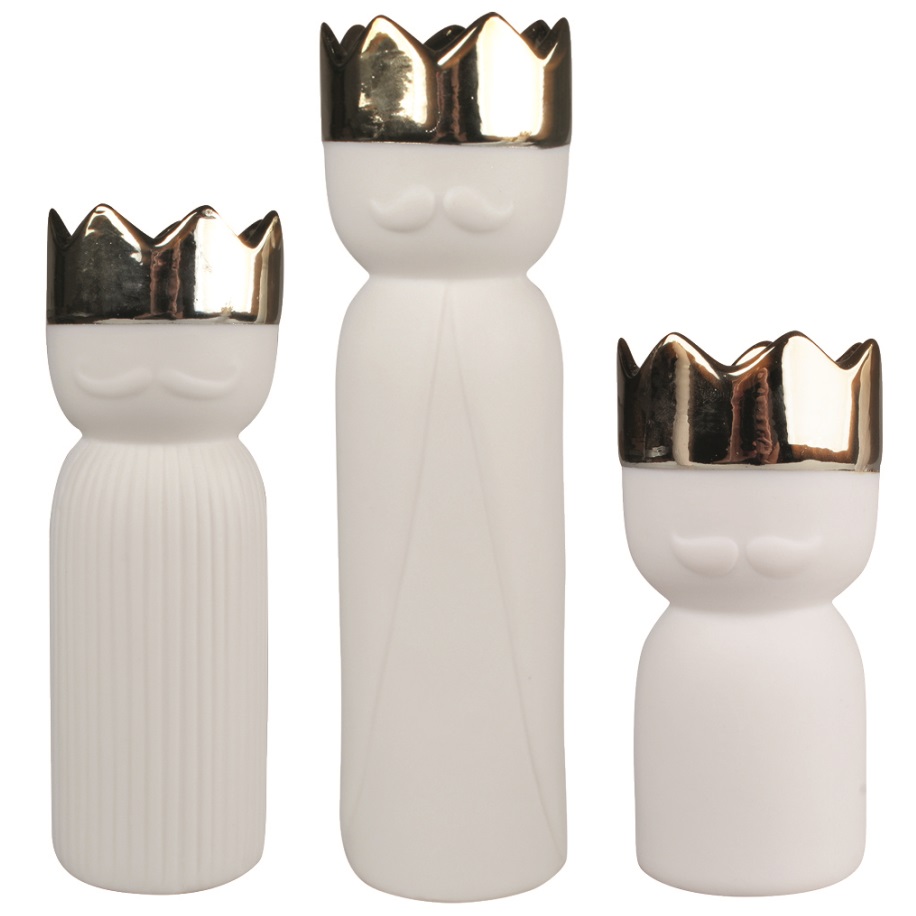 Vánoční svícny Tři králové z porcelánu 6 x 21 cm (sada)