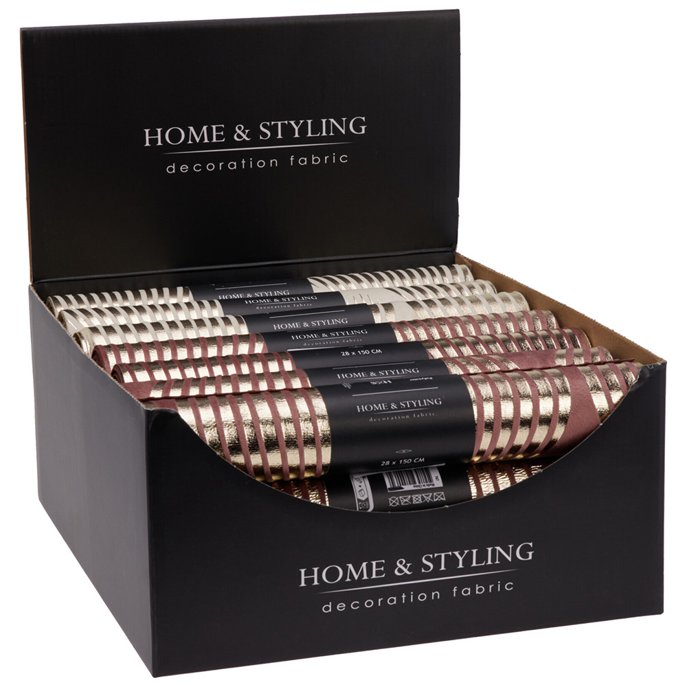 - potisk: pruhy potištěné fólií, barva zlatá šampaň