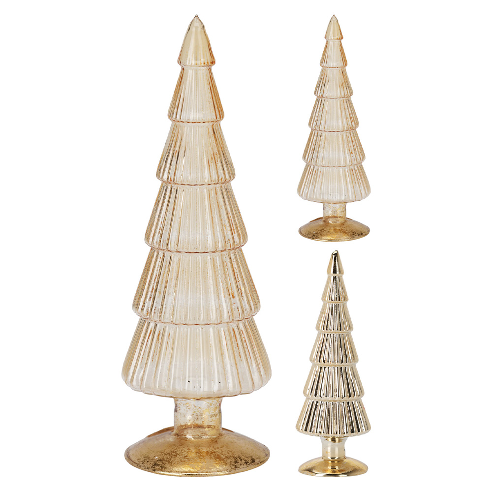 Skleněný vánoční stromek 34 cm, zlatá šampaň (2 barvy)