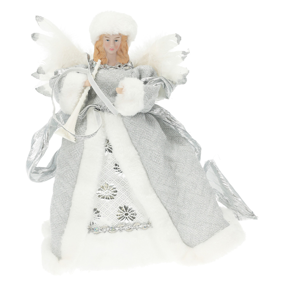Figurka anděla jako ozdoba na vánoční stromek 33 cm - stříbrná
