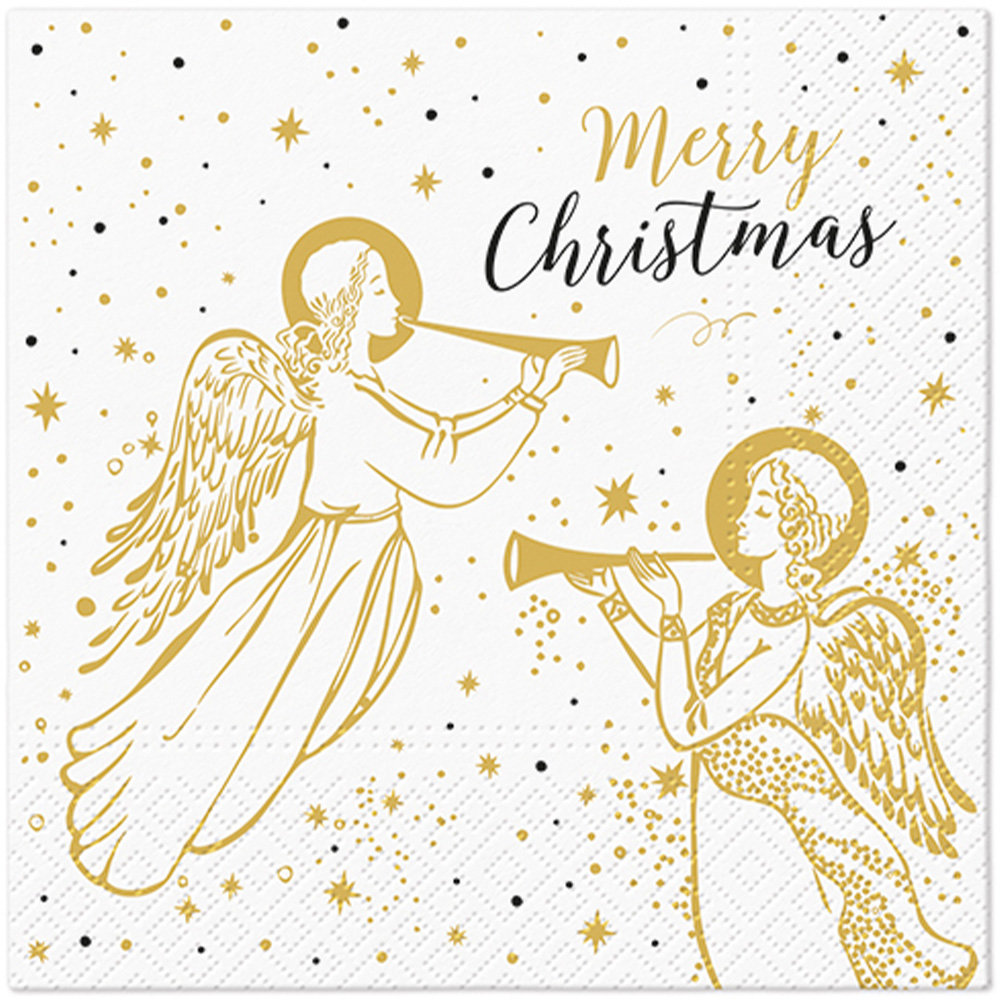 Popis k výrobku: Ubrousky PAW L 33x33cm Angel with Trumpet Tyto ubrousky jsou vyrobeny z hedvábného papíru (100% celulóza). Jsou potištěny barvou s vysokou odolností proti opotřebení. Potisk s krásným motivem dodá Vašemu stolu tu pravou atmosféru. Rozměr: 33 x 33 cm. V jednom balení se nachází 20 kusů ubrousků.
