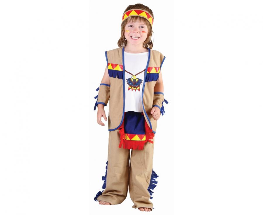 Dětský indiánský kostým (košile s vestou, kalhoty, čelenka, rukávy), velikost 92/104 cm