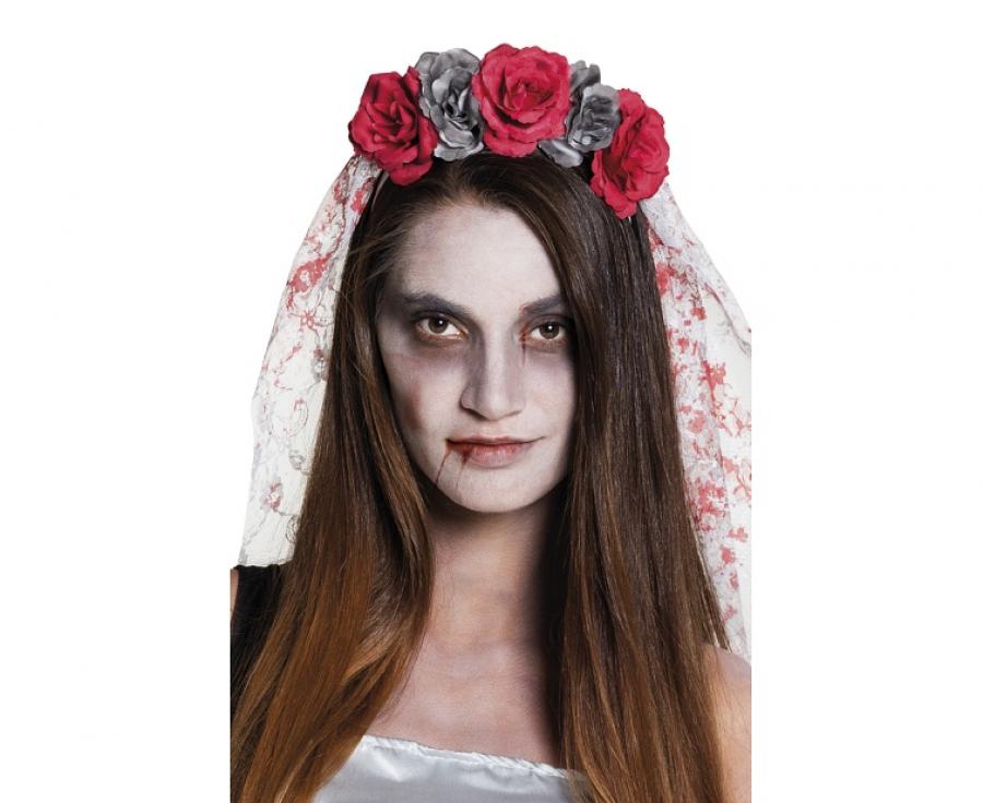 Doplňky ke kostýmu hororové nevěsty - závoj, čelenka