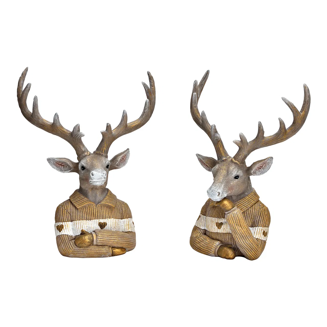 Soška jelena ve zlatohnědém svetru 24 cm (mix 2 vzorů /cena za 1 ks)