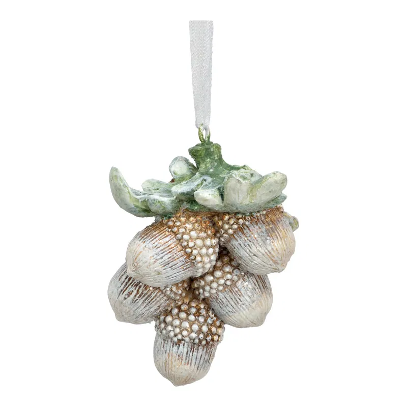 Vánoční dekorace žaludy s listy 5x4x7 cm, se stuhou na zavěšení