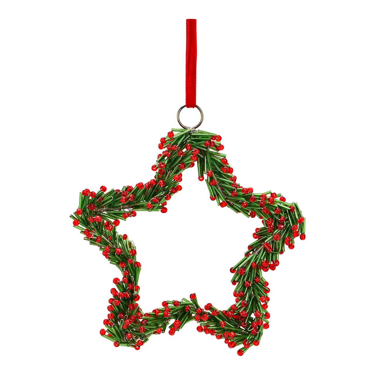 Skleněný vánoční věnec 20 cm na zavěšení, zeleno-červená hvězda