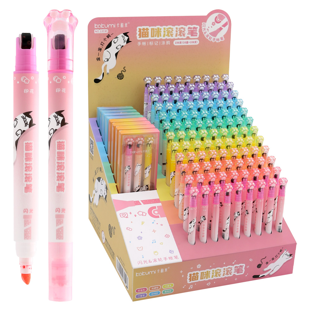 Zvýrazňovač oboustranný - s rotačním razítkem, stojan 108 ks +16x sada 3 ks, (156 ks)